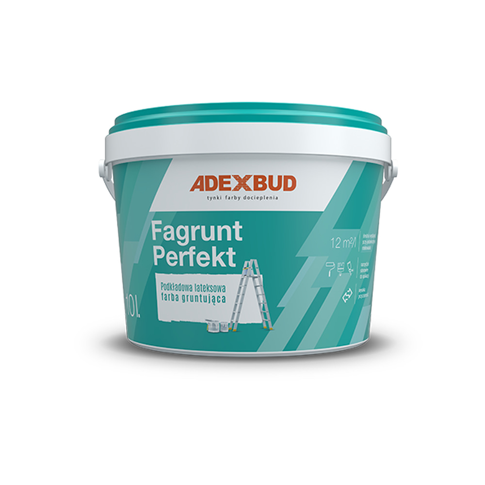 Ґрунтовка латексна для акрилових, латексних, силікатних та силіконових фарб. Грунтовка призначена для покриття фарбою стін та стель на типових будівельних підкладках, тобто цементих, цементно-вапняних, гіпсових штукатурках, гіпсокартонах, поверхнях з дерев’яних панелей (ОСБ) та шпалер зі склопластику. Грунт знижує та нівелює всмоктуваність підкладки та покращує адгезію покриття (акрил, латекс, силікат, силікон). Використання FAGRUNT PERFEKT значно знижує витрати на фарбування. Щоб досягти задовільного кінцевого результату, зазвичай достатньо використовувати один шар FAGRUNT PERFEKT і один шар декоративного покриття, наприклад, COLOR PERFEKT AKRYL або антивідбивна латексна фарба із серії COLLATEX. Для використання всередині і зовні будівель, також як грунтовка перед нанесенням фасадної фарби із серії FASADA PERFEKT.