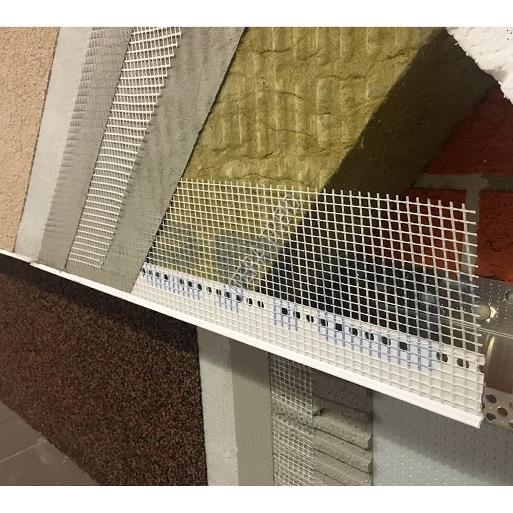 Цокольна накладка з капельником складається з профілю з ПВХ з пришитою армовочною фасадною сіткою.